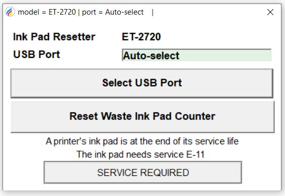 The Epson ET-2720 resetter is a compatible waste ink pad counter resetter for the Epson Ecotank ET-2720 printer. An ink pad resetter provides a reset of the waste ink pad counter of your printer. The ET-2720 inkpad resetter can solve the error notification, SERVICE REQUIRED: A printer’s ink pad is at the end of its service life, a part inside your printer is at the end of its service life, the ink pad needs service, or a printer’s ink pad is nearing the end of its service life.