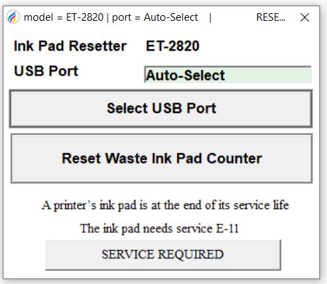 The Epson ET-2820 resetter is a compatible waste ink pad counter resetter for the Epson Ecotank ET-2820 printer. An ink pad resetter provides a reset of the waste ink pad counter of your printer. The ET-2820 inkpad resetter can solve the error notification, SERVICE REQUIRED: A printer’s ink pad is at the end of its service life, a part inside your printer is at the end of its service life, the ink pad needs service, or a printer’s ink pad is nearing the end of its service life.