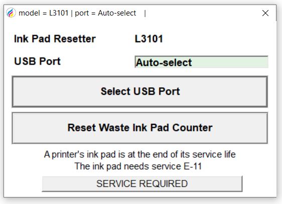 The Epson L3101 resetter is a compatible waste ink pad counter resetter for the Epson Eco tank L3101 printer. An ink pad resetter provides a reset of the waste ink pad counter of your printer. The L3101 inkpad resetter can solve the error notification, SERVICE REQUIREDA printer’s ink pad is at the end of its service life, a part inside your printer is at the end of its service life, the ink pad needs service, or a printer’s ink pad is nearing the end of its service life.