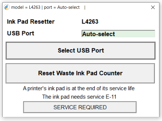 The Epson L4263 resetter is a compatible waste ink pad counter resetter for the Epson Eco tank L4263 printer. An ink pad resetter provides a reset of the waste ink pad counter of your printer. The L4263 inkpad resetter can solve the error notification, SERVICE REQUIRED: A printer’s ink pad is at the end of its service life, a part inside your printer is at the end of its service life, the ink pad needs service, or a printer’s ink pad is nearing the end of its service life.