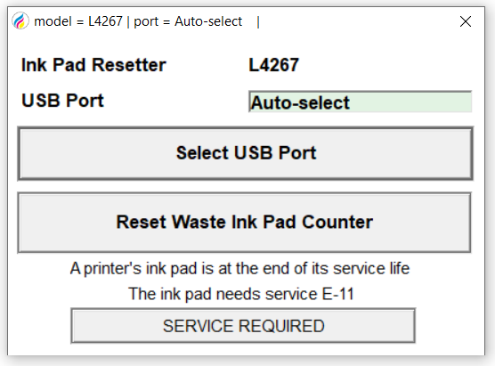The Epson L4267 resetter is a compatible waste ink pad counter resetter for the Epson Eco tank L4267 printer. An ink pad resetter provides a reset of the waste ink pad counter of your printer. The L4267 inkpad resetter can solve the error notification, SERVICE REQUIRED: A printer’s ink pad is at the end of its service life, a part inside your printer is at the end of its service life, the ink pad needs service, or a printer’s ink pad is nearing the end of its service life.